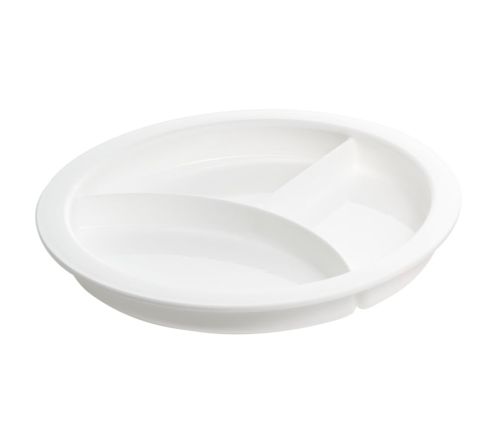 Bord met 3 vakken en zuignap, ideaal bij coördinatieproblemen. Voorkomt morsen en schuiven. Geschikt voor kinderen en volwassenen.