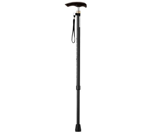 Lichtgewicht Carbon wandelstok met ergonomisch houten handvat en 10-voudig verstelbare hoogte. Stijlvol, stevig en comfortabel.