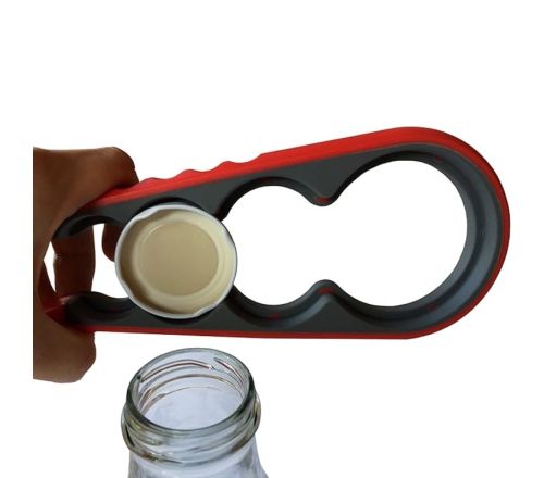 De MultiMotion Fles- en potopener maakt het openen van potten en flessen eenvoudig en krachtbesparend. Het hulpmiddel heeft vier verschillende rondingen die geschikt zijn voor diverse maten deksels. Door de juiste maat te kiezen en de opener met de hand samen te knijpen, grijpt deze stevig om de dop en kan deze moeiteloos worden losgedraaid. Het ontwerp ligt prettig in de hand en is compact en lichtgewicht, waardoor het eenvoudig in de keuken of mee op reis kan worden gebruikt.