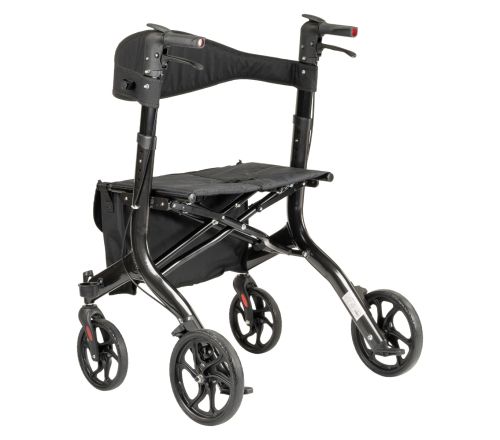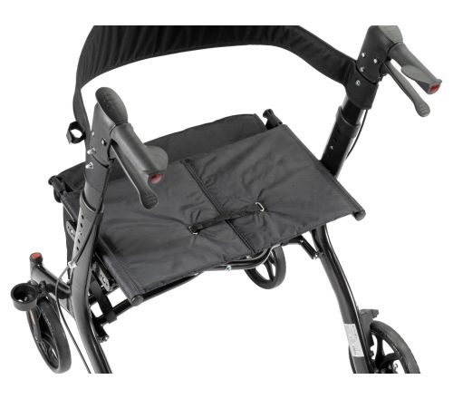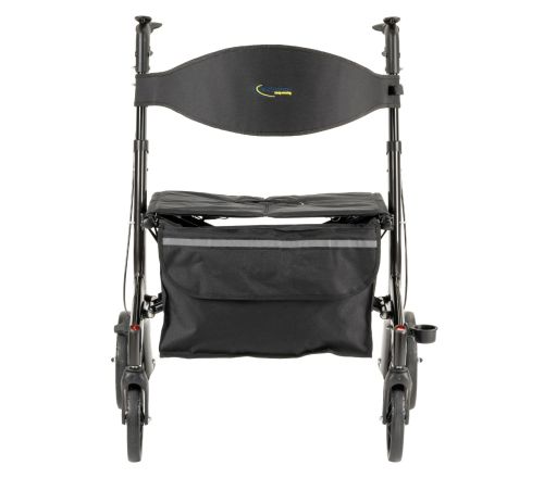 Heavy-duty rollator belastbaar tot 200 kg. Met extra brede rugband en een zitting van 55 cm. Licht voor zijn klasse: 9,6 kg.