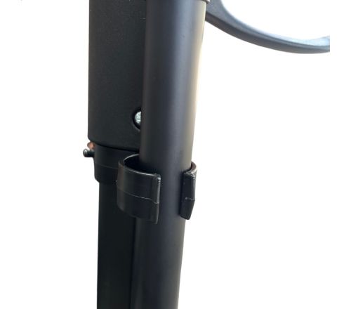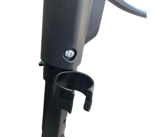 Praktische stokhouder voor de MultiMotion Carbon rollator, eenvoudig te monteren aan de linkerkant van het frame. De wandelstok rust in het onderste bakje en wordt stevig vastgeklemd met de bovenste klem. Geschikt voor vrijwel alle standaard wandelstokken.