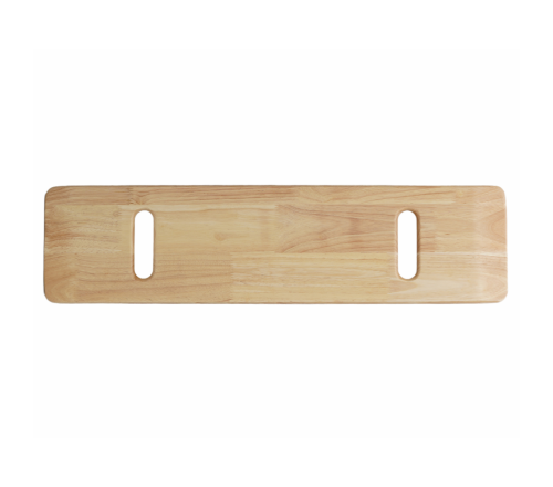 Stevige houten transferplank met twee handgrepen. Maakt veilige transfers mogelijk tussen rolstoel, bed of stoel. Geschikt tot 150 kg gebruikersgewicht.