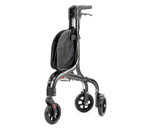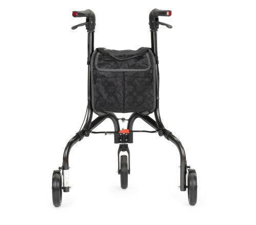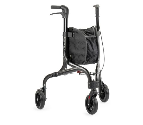 Lichtgewicht 3-wiels rollator voor binnenshuis. Zeer wendbaar door de kleine draaicirkel. Voorzien van remmen, PU-wielen en een handige tas.