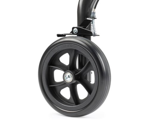 De Tripod rollator is niet geschikt om buiten mee te lopen, omdat er buiten over hobbels en stoepranden gereden word geeft één voorwiel onvoldoende stabiliteit.