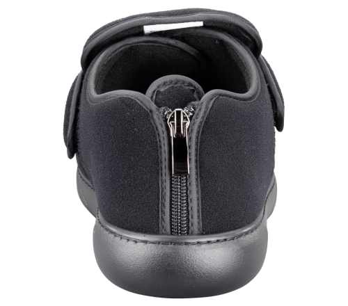Comfortabele verbandschoenen met klittenband en ritssluiting. Volledig te openen, ideaal bij verband of zwelling. Lage uitvoering in zwarte kleur.