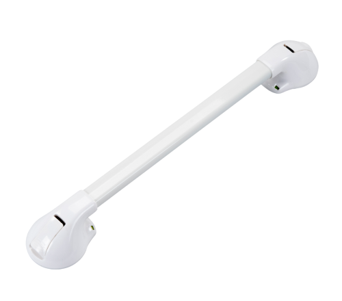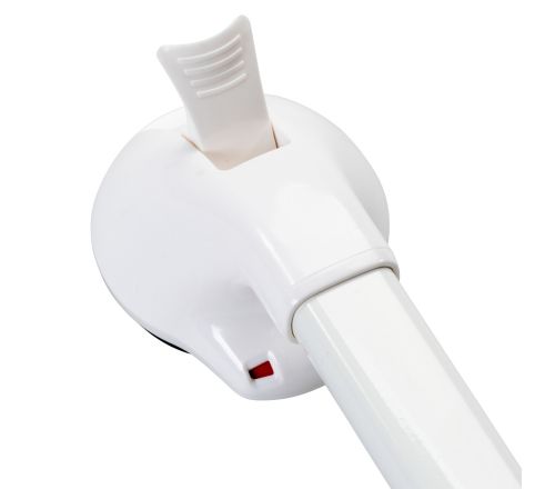 De MultiMotion wandbeugel met zuignappen biedt steun bij opstaan, zitten of in- en uitstappen. Ideaal wanneer boren niet mogelijk is. Let op: een wandbeugel met schroefmontage is altijd de veiligste keuze. Deze beugel is alleen geschikt voor volledig gladde, vlakke en harde oppervlakken. Controleer vóór elk gebruik of de zuignappen stevig vastzitten; bij twijfel niet gebruiken. De beugel is bedoeld als lichte ondersteuning en niet om volledig lichaamsgewicht te dragen.