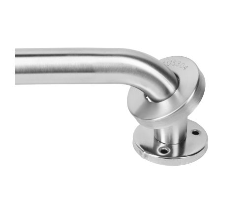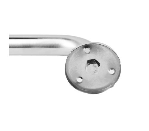 Stijlvolle wandbeugel van geborsteld RVS. Biedt extra steun in badkamer of toilet. Schroeven zijn netjes weggewerkt achter afdekkapjes.